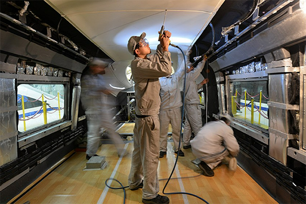 為了吸聲降噪,使用以超輕量隔音吸音棉為主要吸聲材料的吸聲體。吸聲體可以根據(jù)要求制成板狀、柱狀、錐體或其他異型體。吸聲體內(nèi)部填充離心玻璃棉,表面使用透聲面層包裹。由于吸聲體有多個(gè)表面吸聲,吸聲效率很高。普通的隔音棉是市面上很常見,通常是玻璃纖維為主要基礎(chǔ)材料,有高阻燃性,但是環(huán)保性能不佳,有微小粉塵極容易吸附在人體的胃黏膜上造成人體的傷害,漢龍航空研發(fā)生產(chǎn)的超輕量的環(huán)保隔音棉材料采用環(huán)保的PET材料,無粉塵無異味高環(huán)保,有很好的吸聲性,高端的靜音車廂的隔音裝飾中都會(huì)使用到,高吸水性和透氣和低比重性能都遠(yuǎn)遠(yuǎn)不同于普通的玻纖隔音棉。
